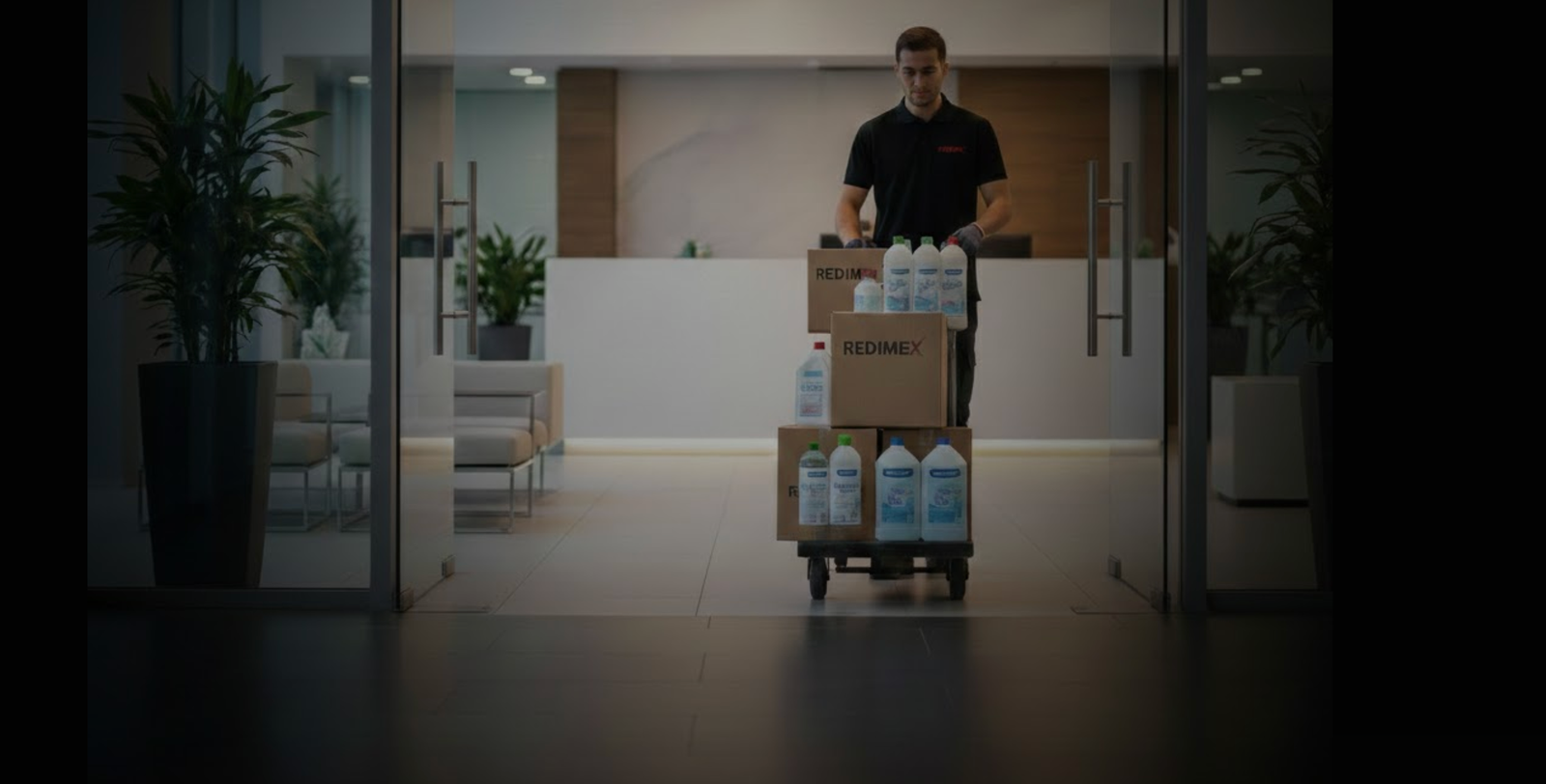 "Deja de gestionar 10 proveedores diferentes. En Redimex unificamos tus insumos de seguridad, limpieza y cafetería en una sola factura y una sola entrega."